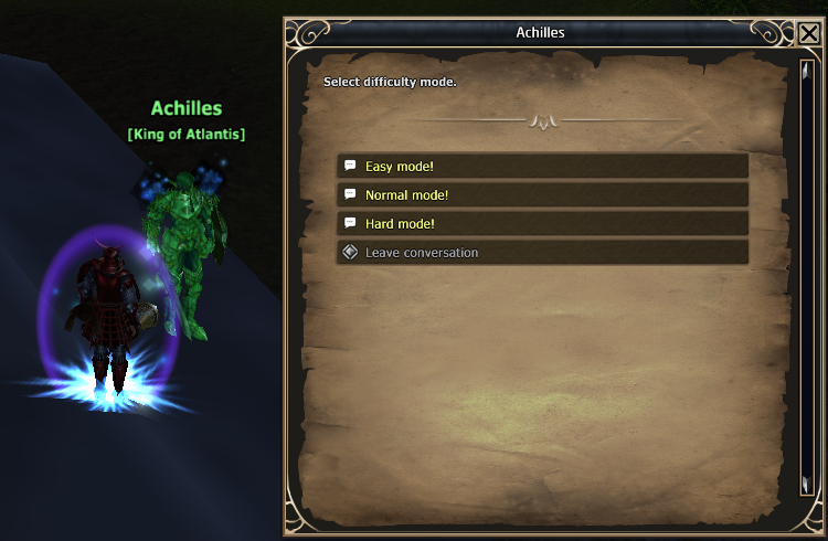 入場後、中にいるアキレスに話しかけ、難易度(3段階)を選びスタート。