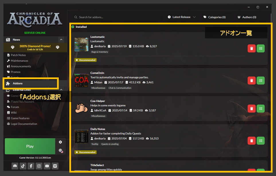 本体のアップデートによりこれらのアドオンが影響を受け、削除しなければゲームにならないような問題が発生、長期化していました。