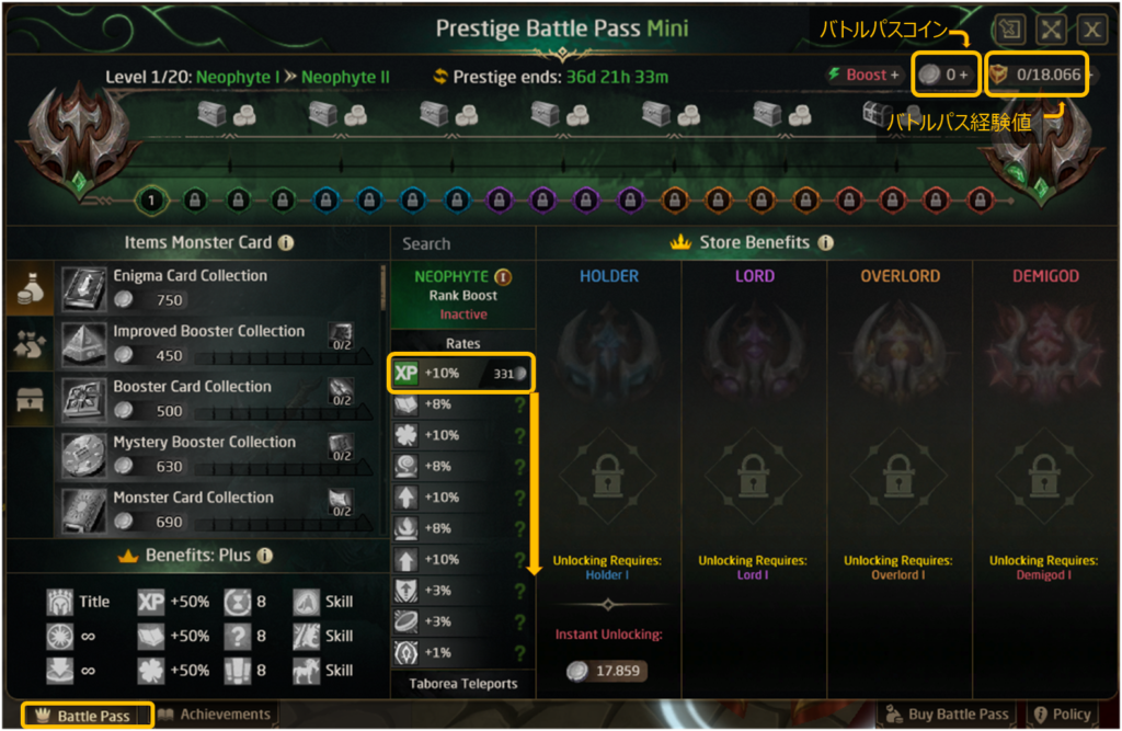 また、経験値に応じてPrestigeのレベルが上がり、受けられる恩恵を更に上げることができます。