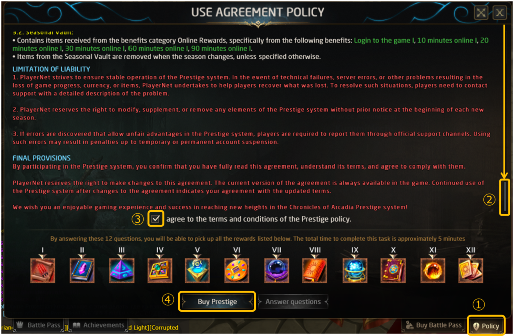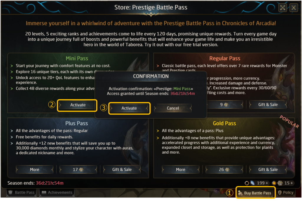 無料のバトルパス「Presitge Mini」を有効にするには一定レベルが必要なので、