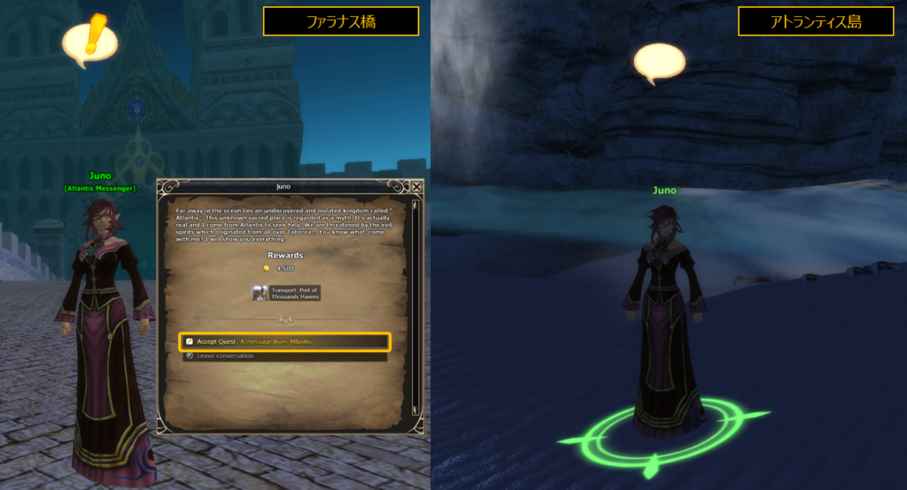 受領と同時にアトランティス島に移動、完了でワープスキルが使用できるようになります。