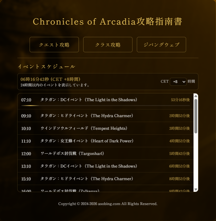 イベント、クエスト、クラスのスキルに関する情報を纏めています。