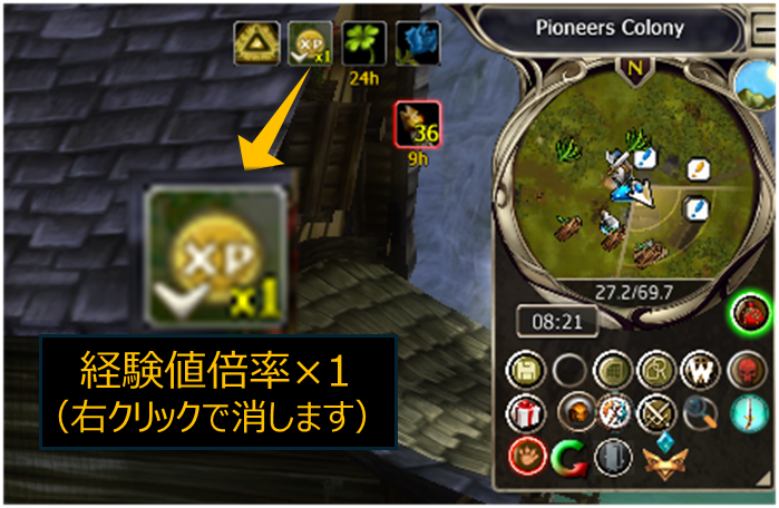 早く育成したい場合はバフをキャンセルし、クエスト、戦闘時の経験値を5倍にすることができます。